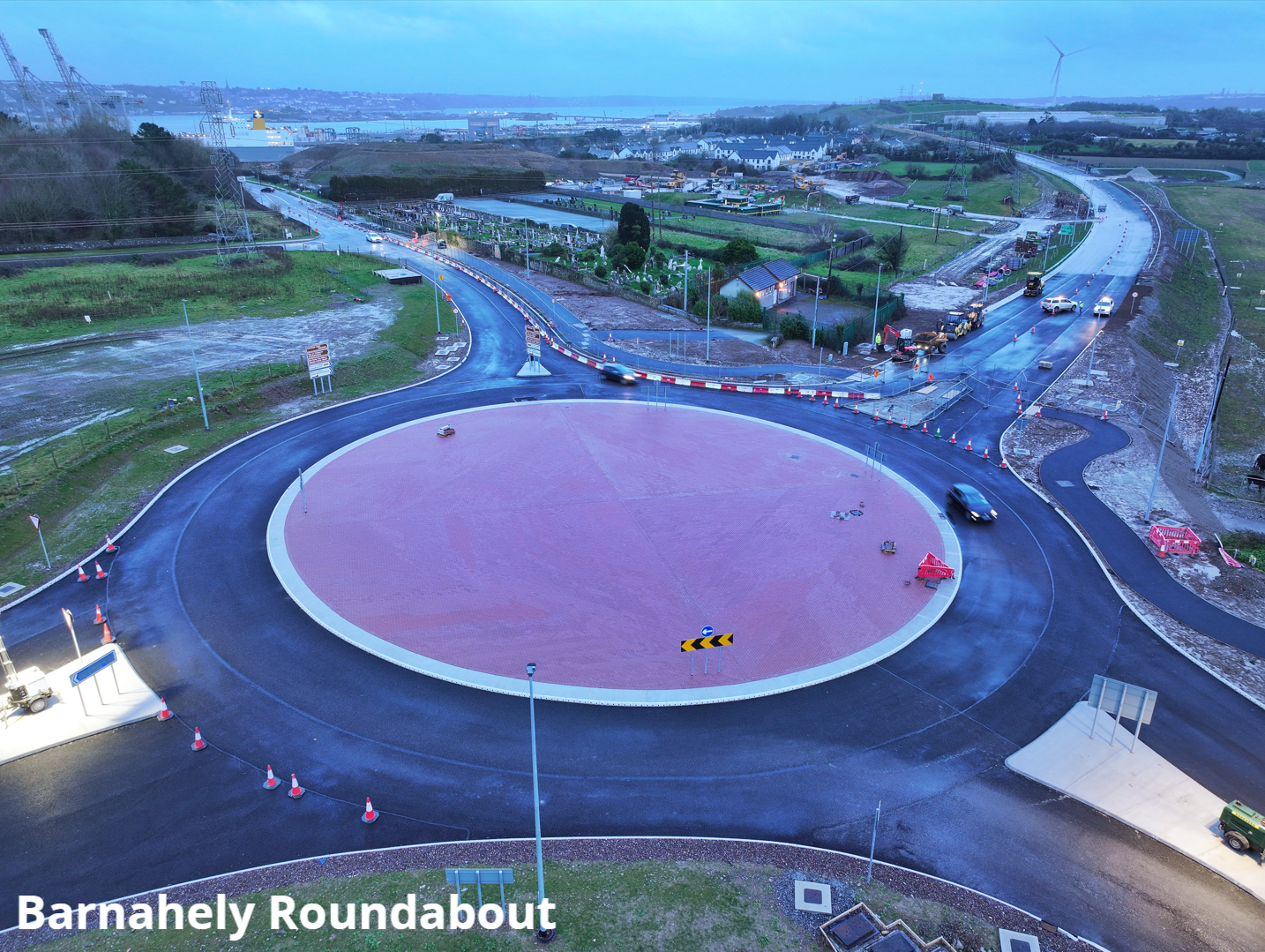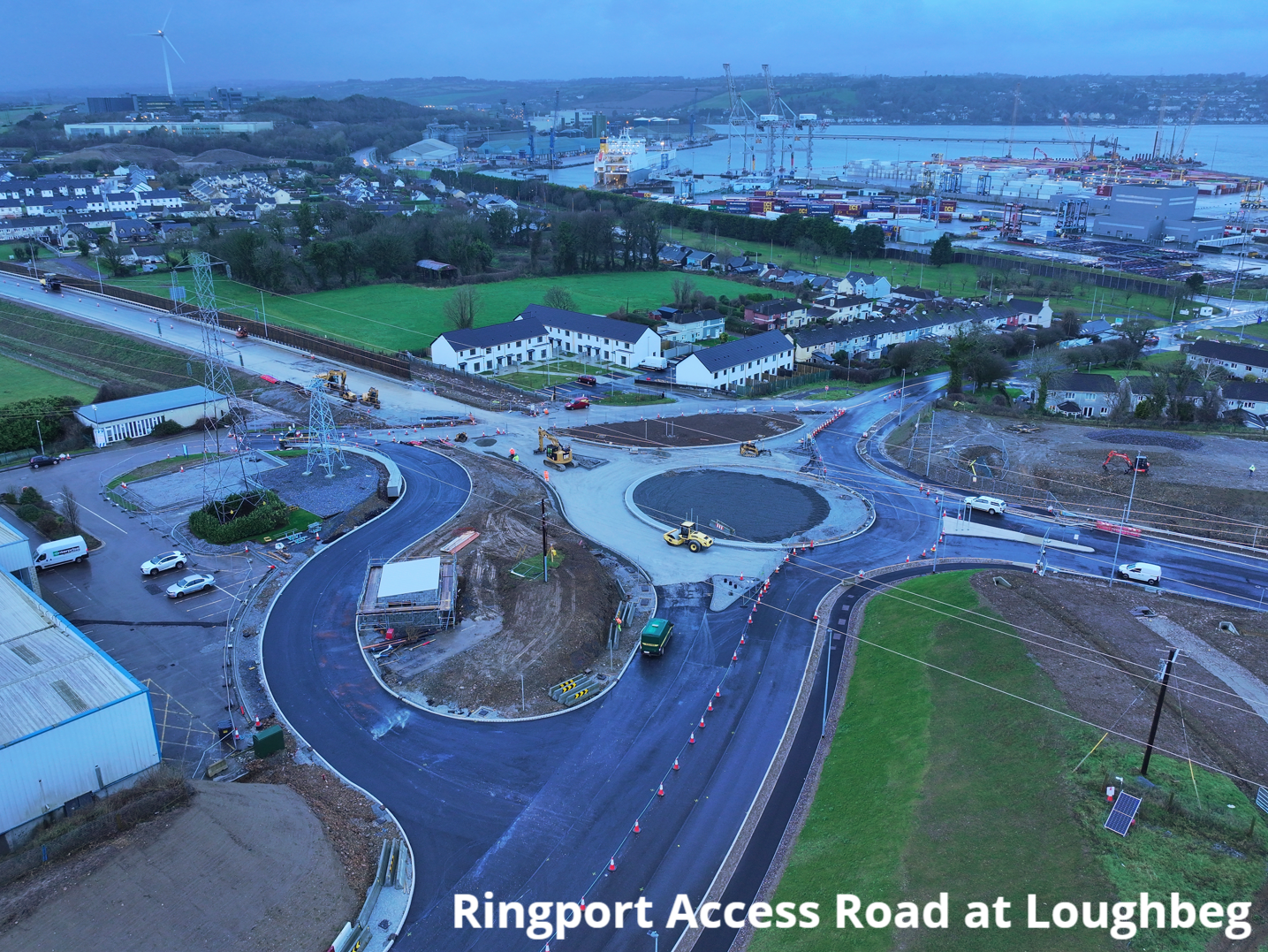 Separately, progress continues on the Ringaskiddy Relief Road. At Loughbeg, the new access road at Ringport Business Park is now open to traffic, facilitating the completion of the Loughbeg Roundabout. Surfacing work on the Loughbeg Road and Roundabout is continuing.