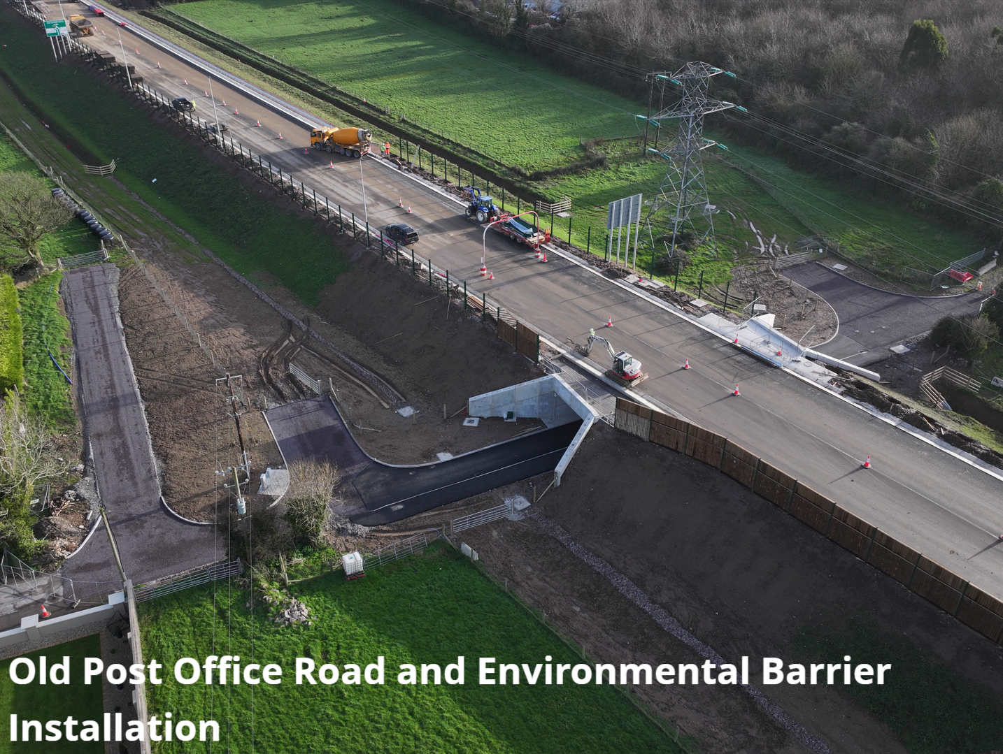 The installation of the noise barrier is progressing well on the mainline near Old Post Office Road and will commence shortly at the Ringaskiddy end of the scheme. The installation of the vehicle restraint barrier is nearing completion, and the majority of traffic signage is installed throughout the scheme.
