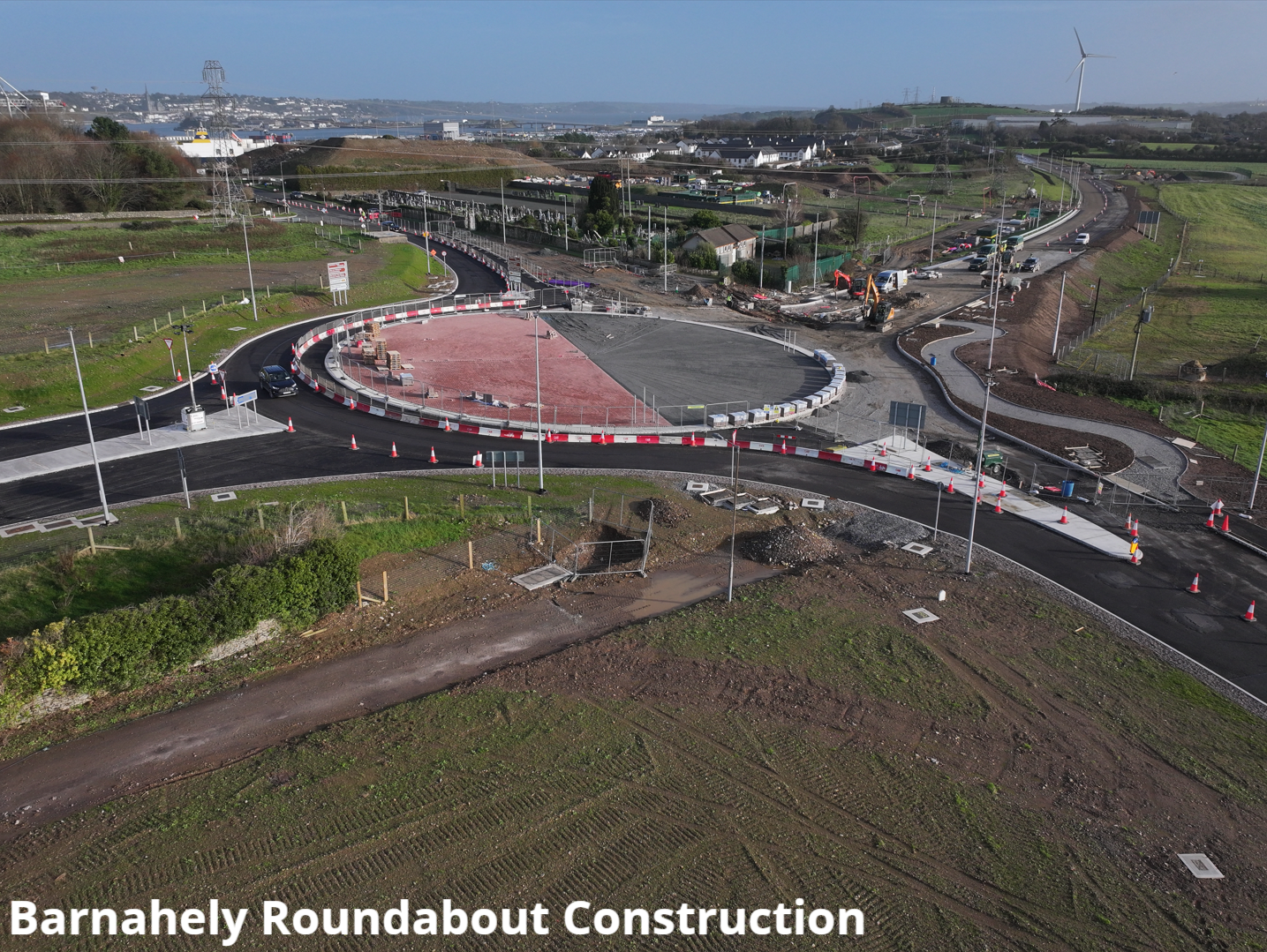 At Barnahely Roundabout, traffic continues to operate on the northbound lane under a one-way system while works progress. Significant progress has been made on both the eastern and northern approaches, with preparations for final road surfacing now well advanced. Surfacing works are scheduled to begin early next week, with the roundabout expected to reopen to two-way traffic by the end of the week.