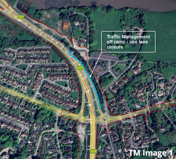 Motorists should be aware of a number of traffic management measures currently in place. On the Rochestown off-ramp from the existing N28, a lane closure is in effect, with one lane remaining open for the next couple of weeks to support retaining wall construction.