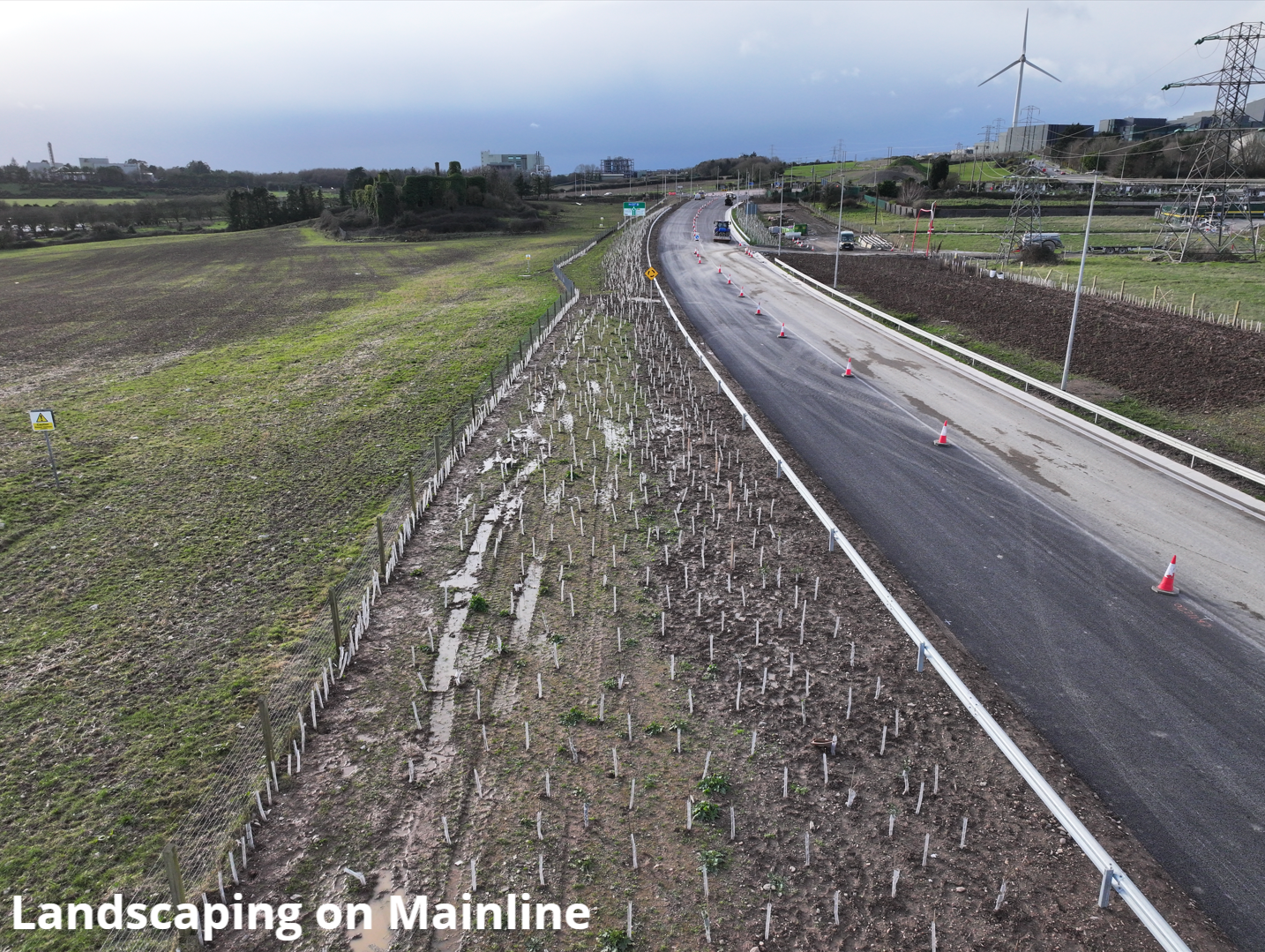On the mainline, street lighting and crash barrier works are nearing completion, while planting and landscaping works are approximately 90% complete. At Barnahely Roundabout, footway and cycleway works are progressing northwards towards Ringaskiddy, with further sections of the path due to be surfaced and opened to pedestrians and cyclists in the coming days.