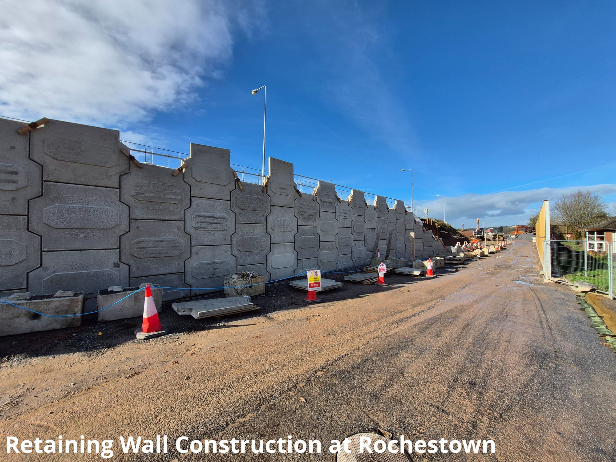 At Rochestown, construction of retaining walls near the N28 off-ramp is continuing alongside road widening works at the Bloomfield junction. Extraction of temporary sheet piles in this section is scheduled for the week commencing 2nd March.