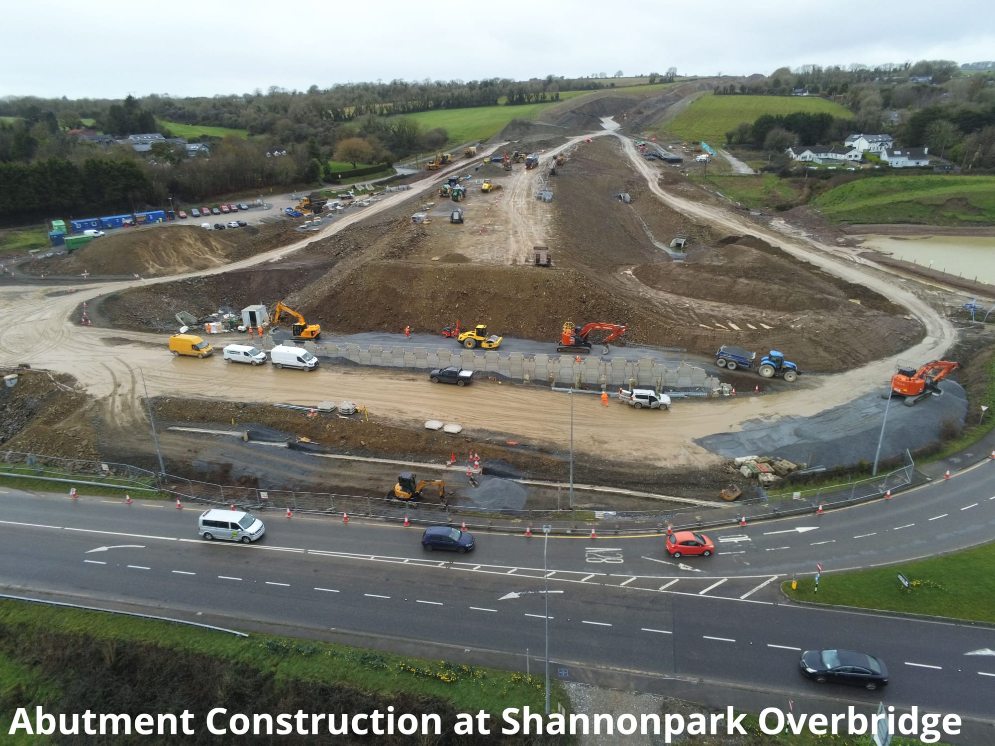 Shannonpark is seeing significant structural progress, with construction of the overbridge advancing and work on the north abutment ongoing. The south abutment is due to start next week, alongside construction of the new link road between the existing and proposed western roundabouts.
