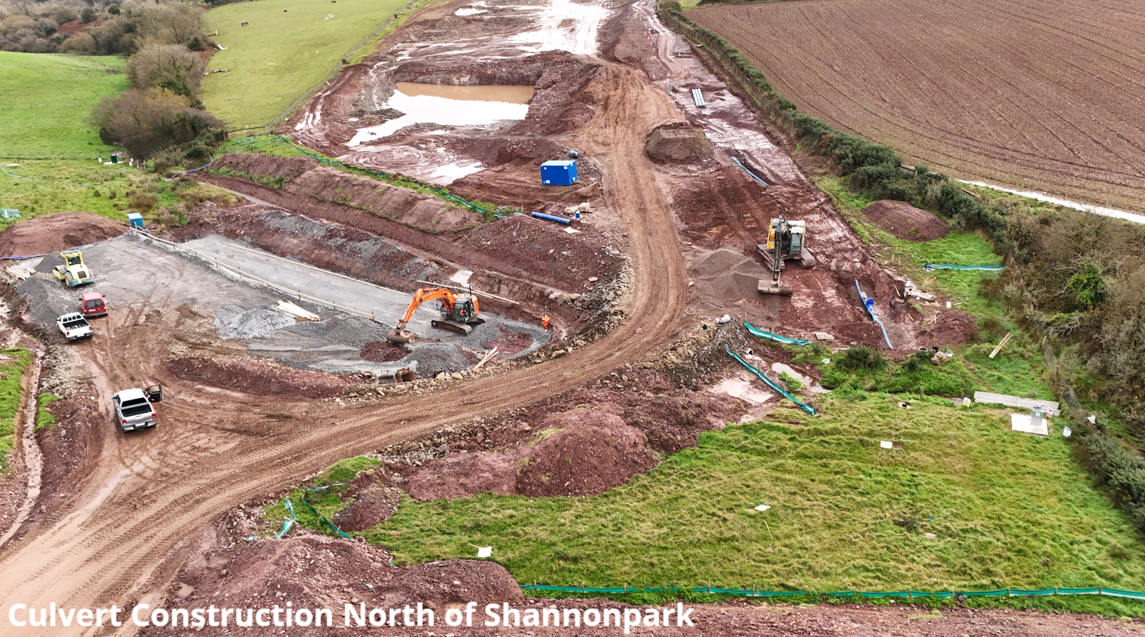At Shannonpark, rock excavated from the main cut is being crushed, processed and stockpiled for reuse in road construction throughout the scheme. Nearby culvert structures for a stream diversion are nearing completion and are expected to become operational by mid-December, subject to weather conditions.