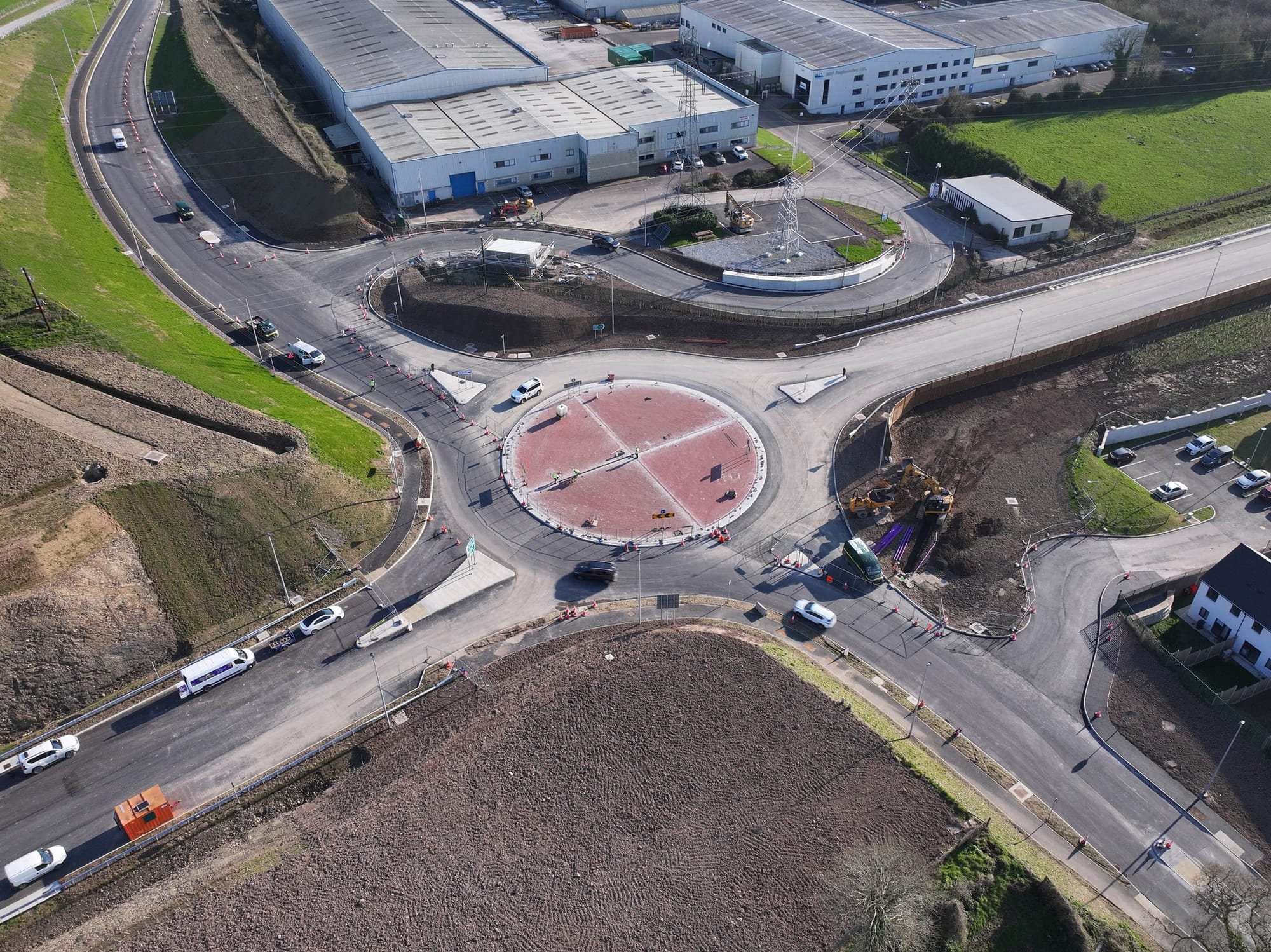 In Ringaskiddy, the main focus of works continues at Loughbeg and Ringport, where surfacing works at the tie-ins and within the business park are nearing completion. The brick paving of the roundabout central island is now 95% complete.