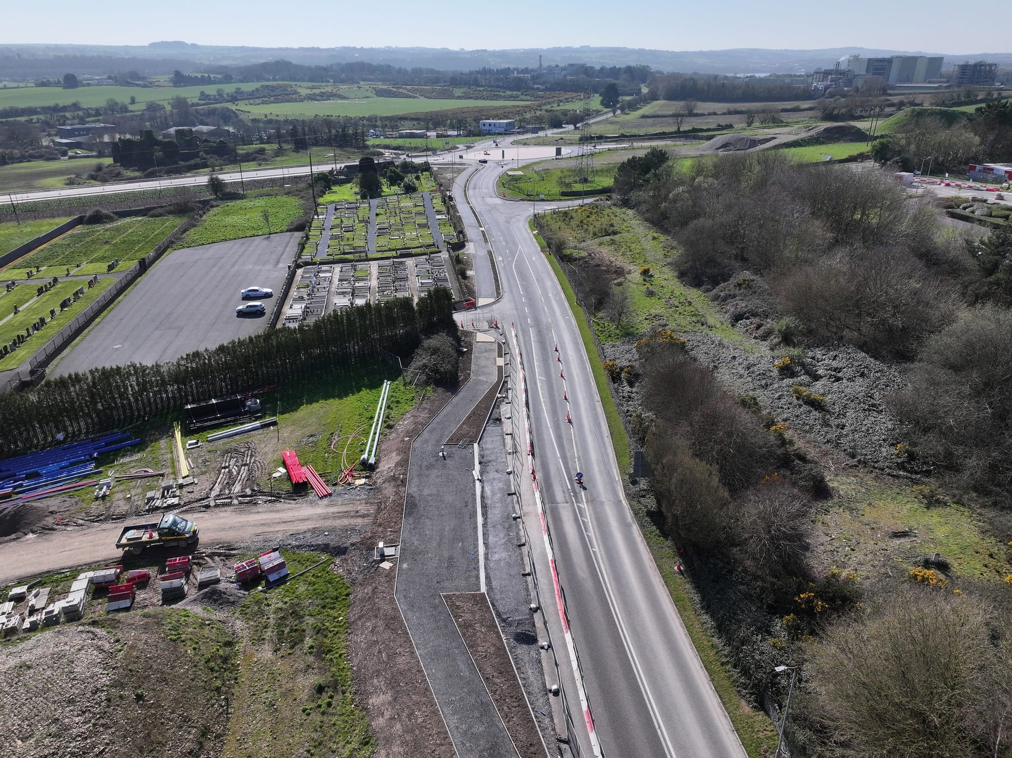 On the R613 in Barnahely, footway and cycleway works on the east side are also nearing completion. Once finished, that section will be opened to pedestrians and cyclists, with traffic management switching to the western edge of the road, either side of the Johnson & Johnson entrance.