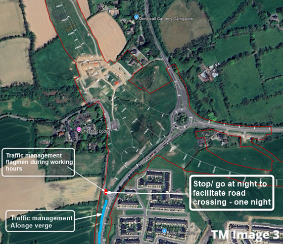 Intermittent flagman-controlled plant crossings are also active on the Board of Works Road during working hours, subject to weather conditions. Flagmen remain in place on Ballinrea Road for plant crossings, with traffic management in effect along the verge of the R611. Night works are scheduled there next week for one night to facilitate a drainage road crossing, during which traffic will be managed by a stop/go system.
